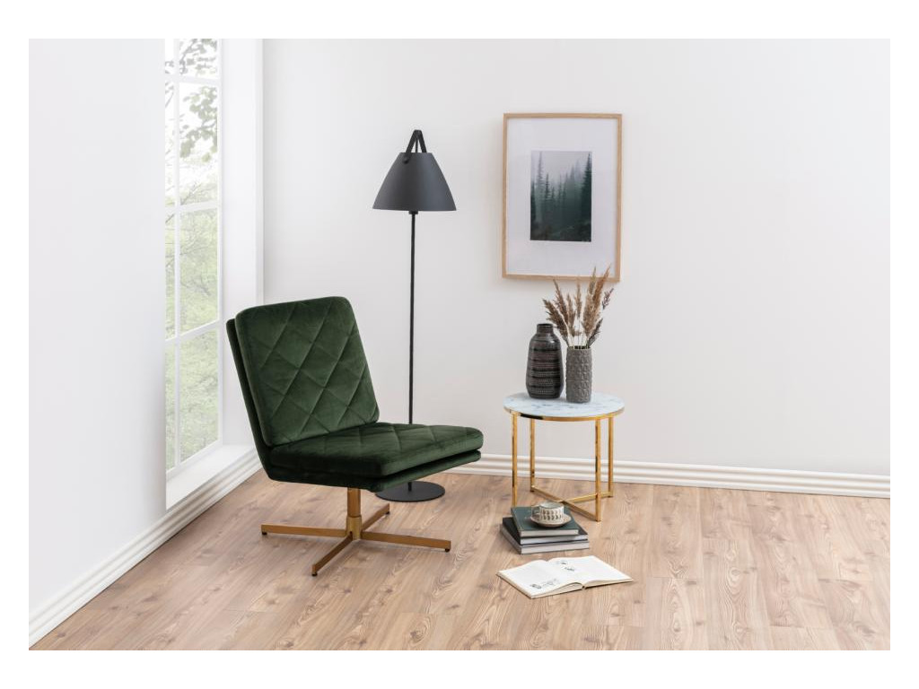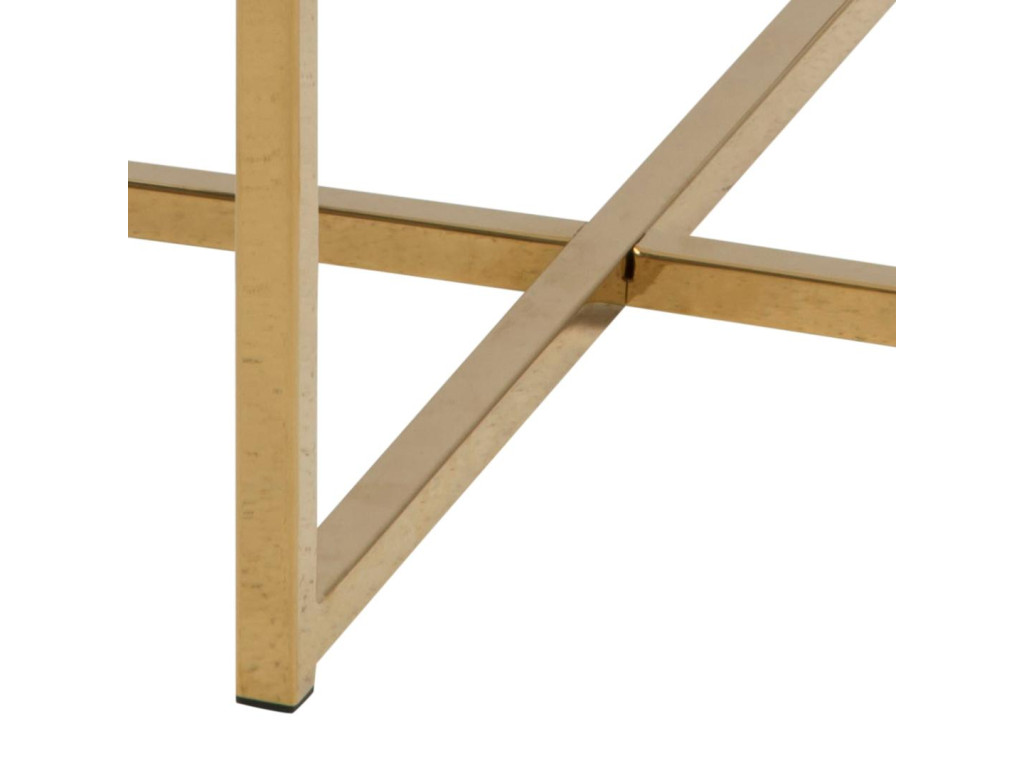 Príručný stolík Alisma v okrúhlom tvare pôsobí moderným a sofistikovaným dojmom. Jeho doska s priemerom 50 cm je vyrobená z tvrdeného a matného skla s realistickou potlačou bieleho krištáľovo číreho mramoru Rome, ktorý dodáva celku elegantný vzhľad. Výrazným vizuálnym prvkom je zlatá chrómová oceľová podnož so štyrmi nohami a krížovým spojom, ktorá zabezpečuje pevnú oporu a vytvára dojem jemného lesku a ľahkosti. Stolík je ideálny ako doplnok k sedačke, kreslu alebo do spálne – všade tam, kde chcete vniesť štýl, ale zároveň aj praktické miesto na odloženie drobností. Použité materiály si vyžadujú len minimálnu údržbu – na udržiavanie vzhľadu stačí mäkká handrička a jemný čistič skla.