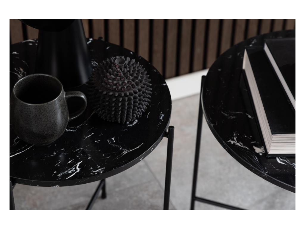 Okrúhly príručný stolík Avila 52 - čierny mramor / čierna