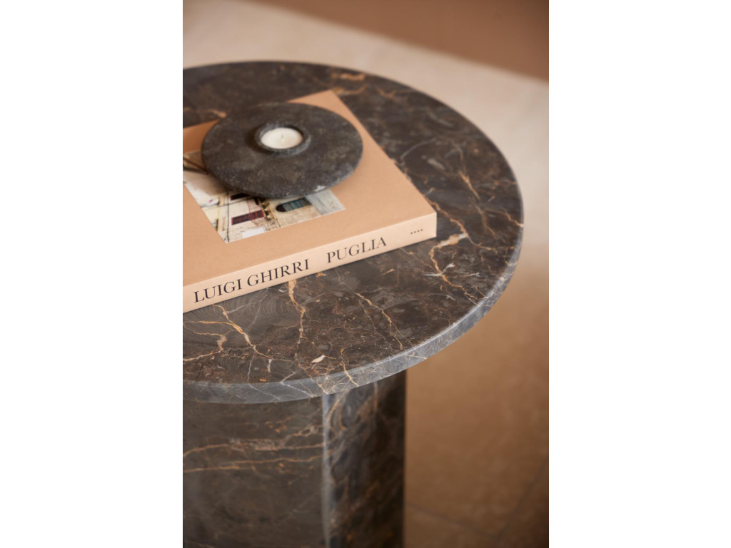Tento príručný stolík Naxos zaujme tmavým hnedým mramorovým vzhľadom. Okrúhly tvar a minimalistická forma vytvárajú moderný dizajn. Skvelo sa hodí vedľa kresla alebo pohovky. Elegantný doplnok, ktorý zvýrazní štýl každej miestnosti.