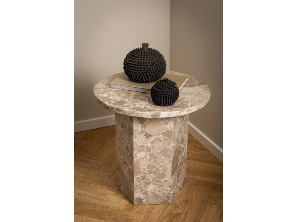 Okrúhly príručný stolík Naxos - svetlohnedý mramor