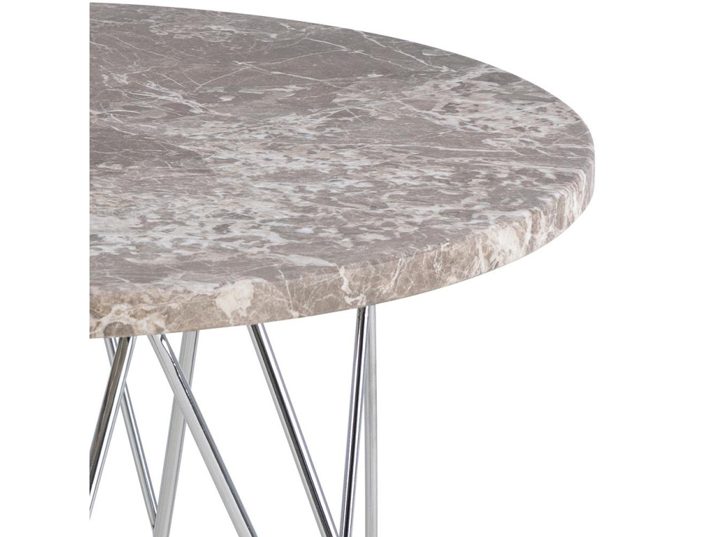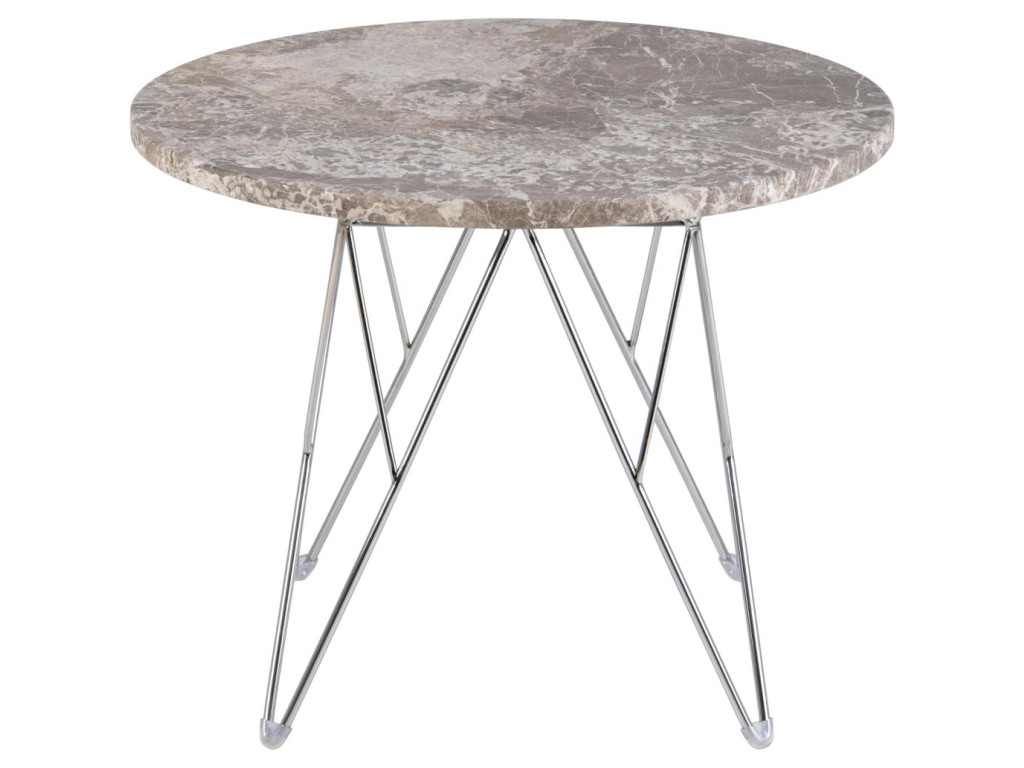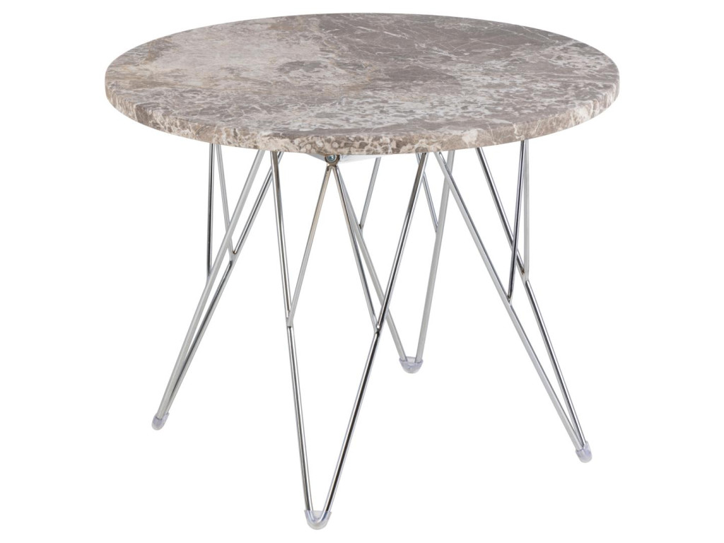 Okrúhly príručný stolík Prunus - hnedý mramor / chróm