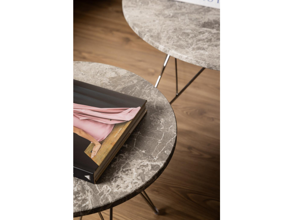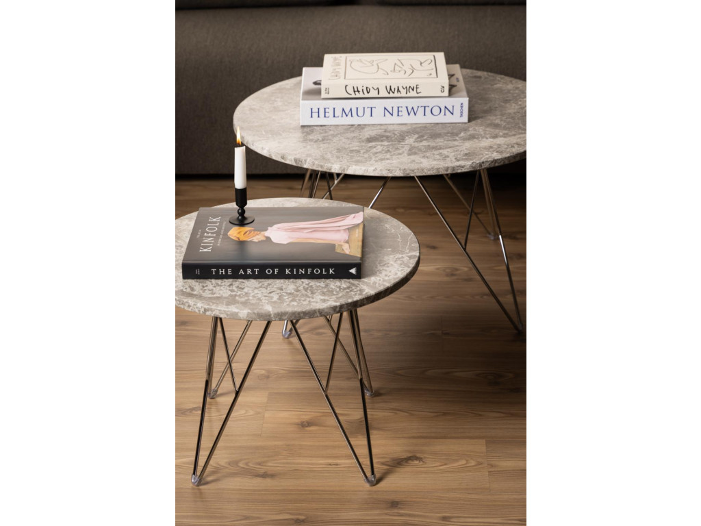 Elegantný a nadčasový stolík Prunus je ideálnym doplnkom k pohovke, kreslu či do chodby. Vďaka svojej kompaktnej veľkosti a premyslenému dizajnu zaujme na prvý pohľad. Doska zo sivohnedého mramoru typu Spider pôsobí luxusne a originálne – každý kus je unikátny vďaka prirodzeným štruktúram a farebným odchýlkam. Stabilná a zároveň ľahká chrómová drôtená základňa podčiarkuje jeho moderný charakter.