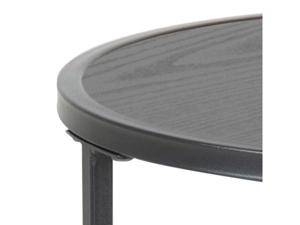 Stolík Seaford v okrúhlom prevedení poskytuje kompaktnú a funkčnú plochu na drobnosti. Kombinácia čierneho melamínu a ocele zaručuje pevnosť aj moderný vzhľad.