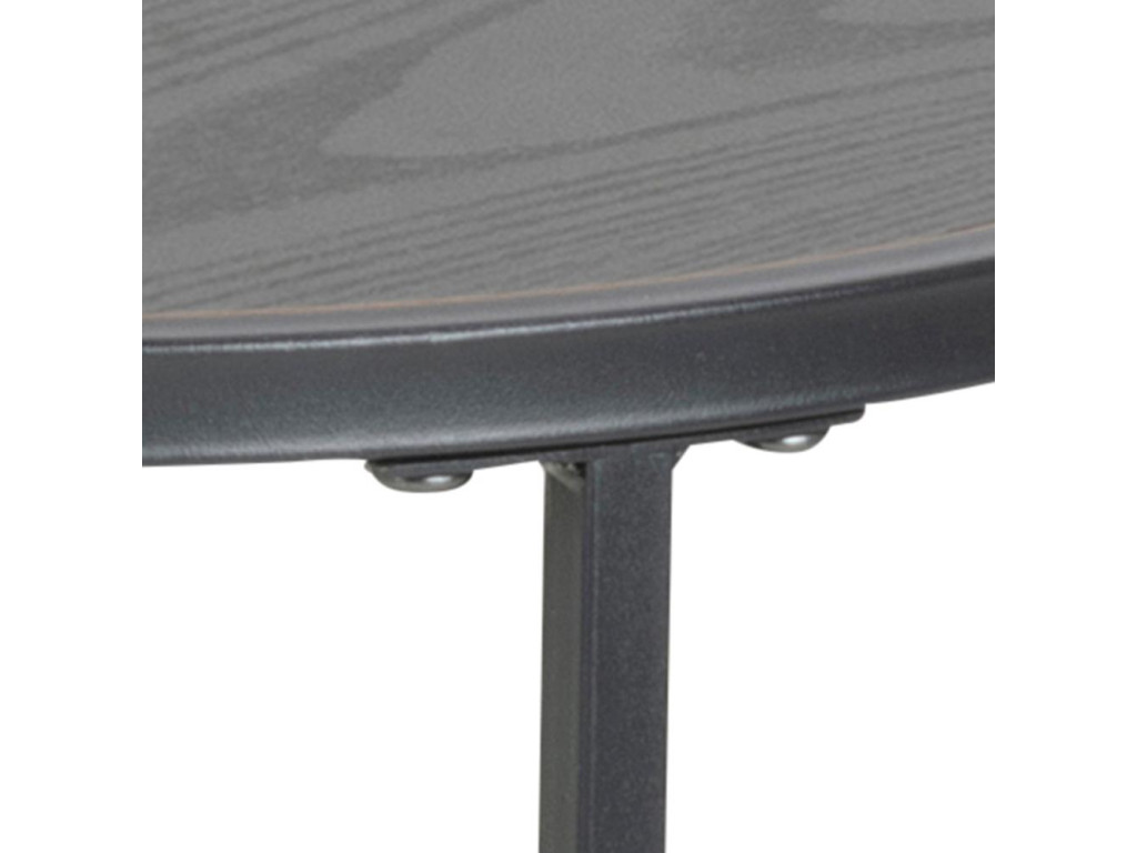 Čierno-čierna verzia stolíka Seaford pôsobí ako elegantný monolit: matná doska v dekore čierneho jaseňa splýva so štíhlymi oceľovými nohami v rovnakom odtieni. Okrúhly tvar zjemňuje ostré industriálne línie a vizuálne odľahčí priestor – či už ho postavíte k sedačke, k posteli alebo do čitateľského kútika.