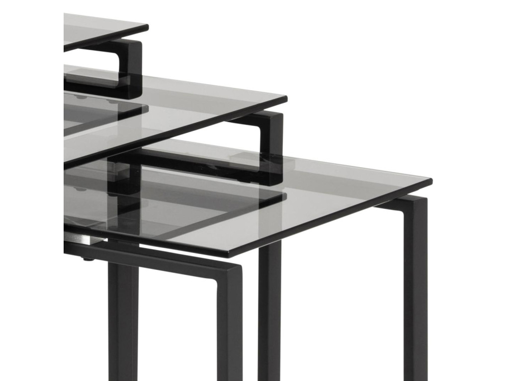 Set príručných stolíkov Katrine (3 ks) - dymové sklo / čierna