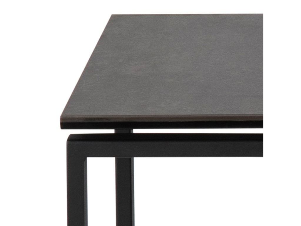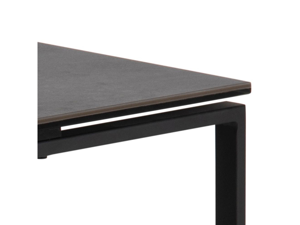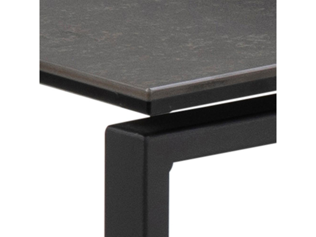 Pre tých, ktorí hľadajú tmavý a robustný prvok do interiéru, je tu táto verzia s keramickou doskou v odtieni čiernej Fairbanks. Matná čierna kovová základňa zaisťuje stabilitu a zároveň necháva keramický povrch vyniknúť svojou textúrou aj odolnosťou.