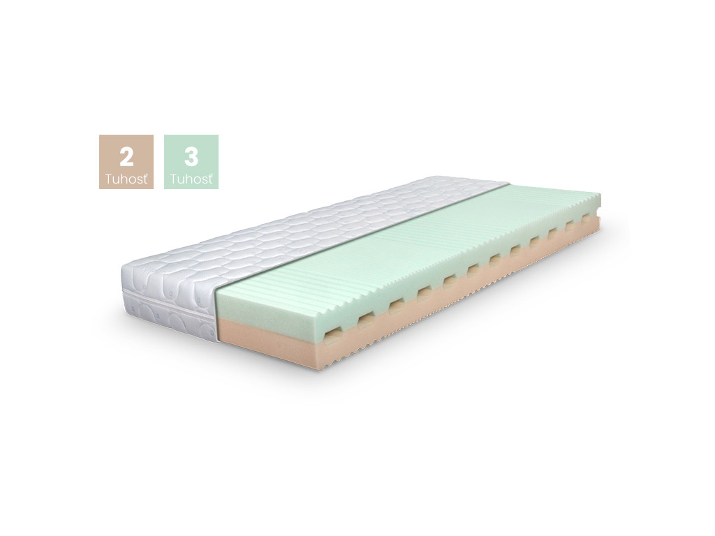 Penový matrac s 5 zónami, je vyrobený spojením dvoch vrstiev tvrdosti. Jedna strana je mäkšia a druhá tvrdšia, preto je možné matrac otočiť podľa seba. Matrac má dva prerezané diely s horizontálnymi prieduchmi pre dokonalé odvetranie jadra.