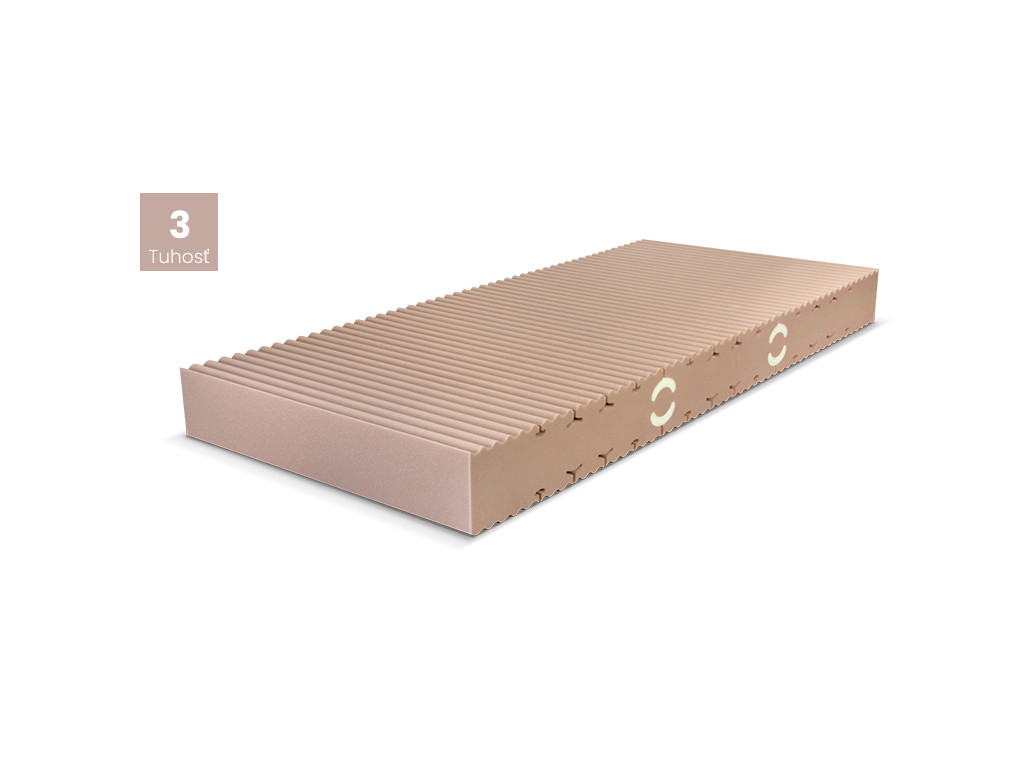 Špeciálna konštrukcia s lamelovým prierezom a bedrovým vystužením zaisťuje pre každú časť ľudského tela optimálne pohodlie a dokonalé prevzdušnenie. Penový matrac bez lepidiel je vyrobený z jedného bloku studenej peny Eurofoam a poskytne každému používateľovi maximálny komfort pri každom ležaní. Na povrchu matrac s vlnkovým profilovaním.