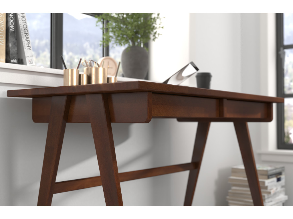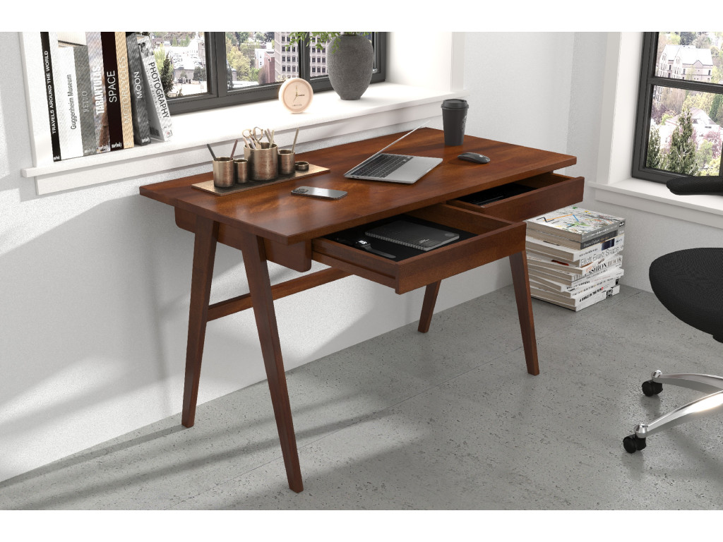 Pod pracovnou doskou sa nachádzajú dve nízke zásuvky, ideálne na drobnosti, ktoré potrebujete mať vždy po ruke. Dlhá doska poskytuje dostatok miesta pre všetky pracovné potreby – či už ide o notebook, knihy alebo študijné materiály. Jemné kresby a prírodná povrchová úprava v štyroch farebných variantoch robia z tohto stola ideálny kúsok pre každého milovníka prírodného dizajnu.