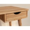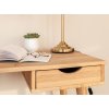 Moderný písací stôl Simon ohúri nadšencov minimalizmu. Je výrazný pre svoj atypický dizajn. Stolík na dlhých nohách dodá každému interiéru ten správny štýl. Je vyrobený z masívneho dubu, ktorý má antistatické vlastnosti. Stolík disponuje zásuvkou so zárezom, ktorý slúži ako úchytka. Má špecifický tvar vďaka nerovnomerným hranám na pracovnej doske. Stôl je natretý v odtieni dub, ktorá v miestnosti vytvorí pohodovú prírodnú atmosféru. Hodí sa do malého aj veľkého interiéru.