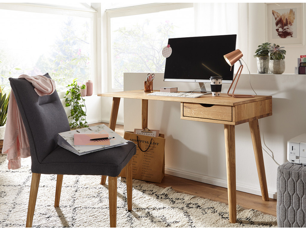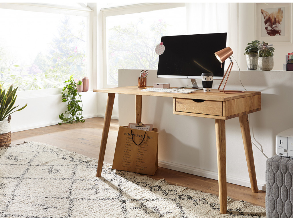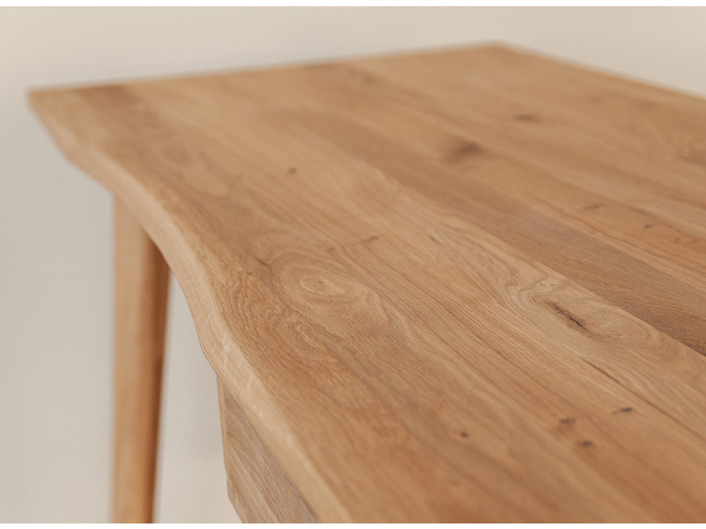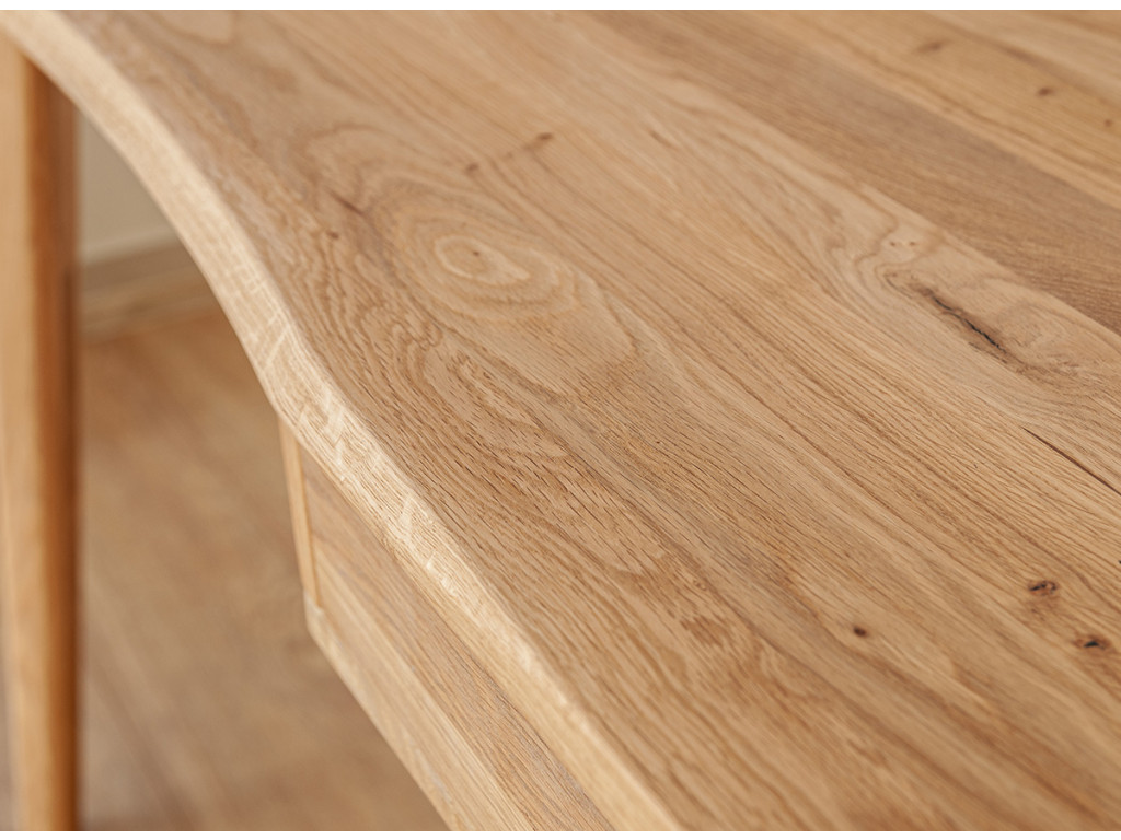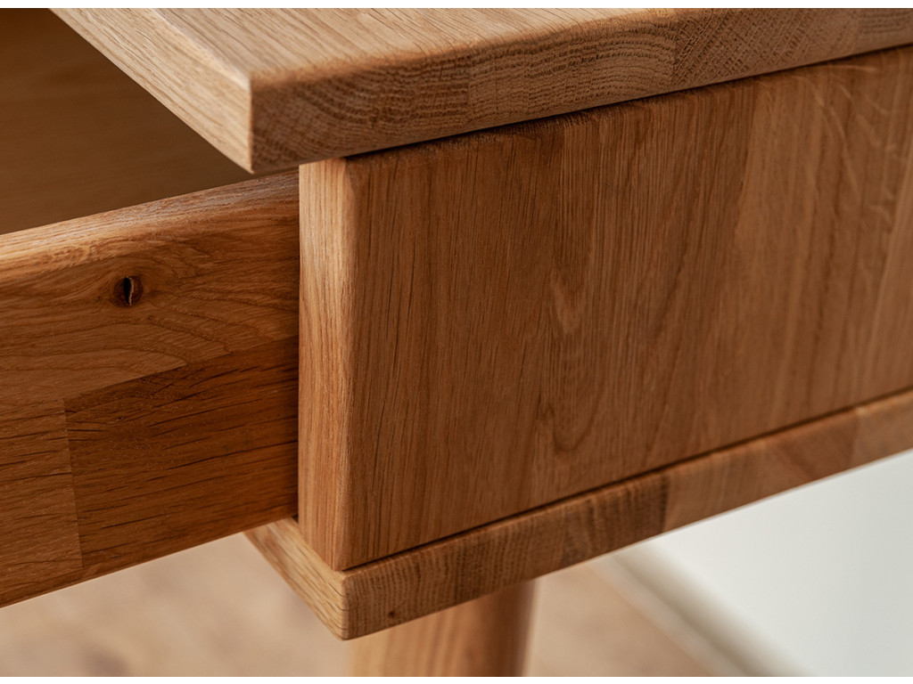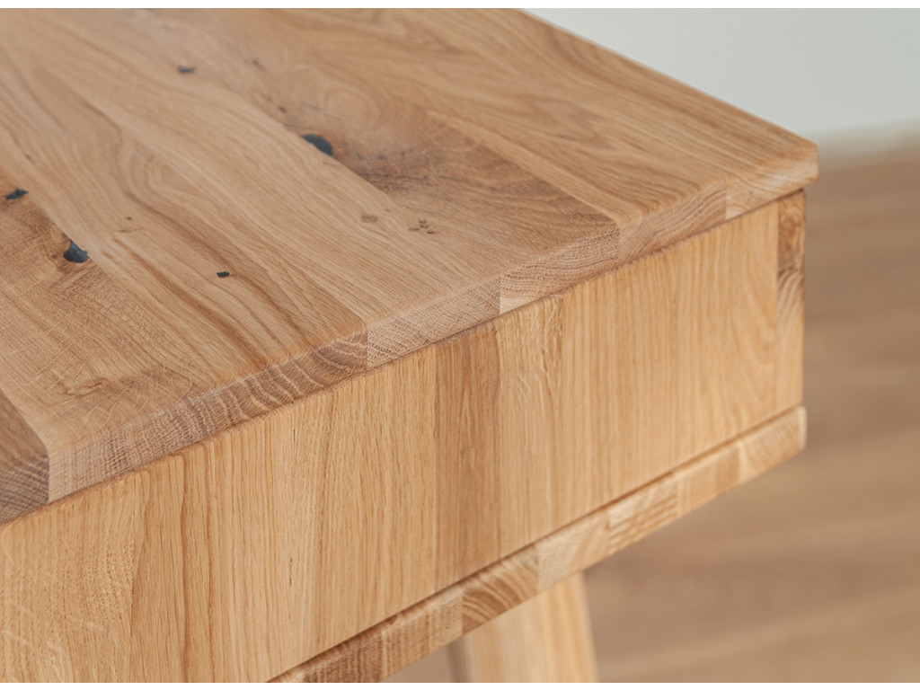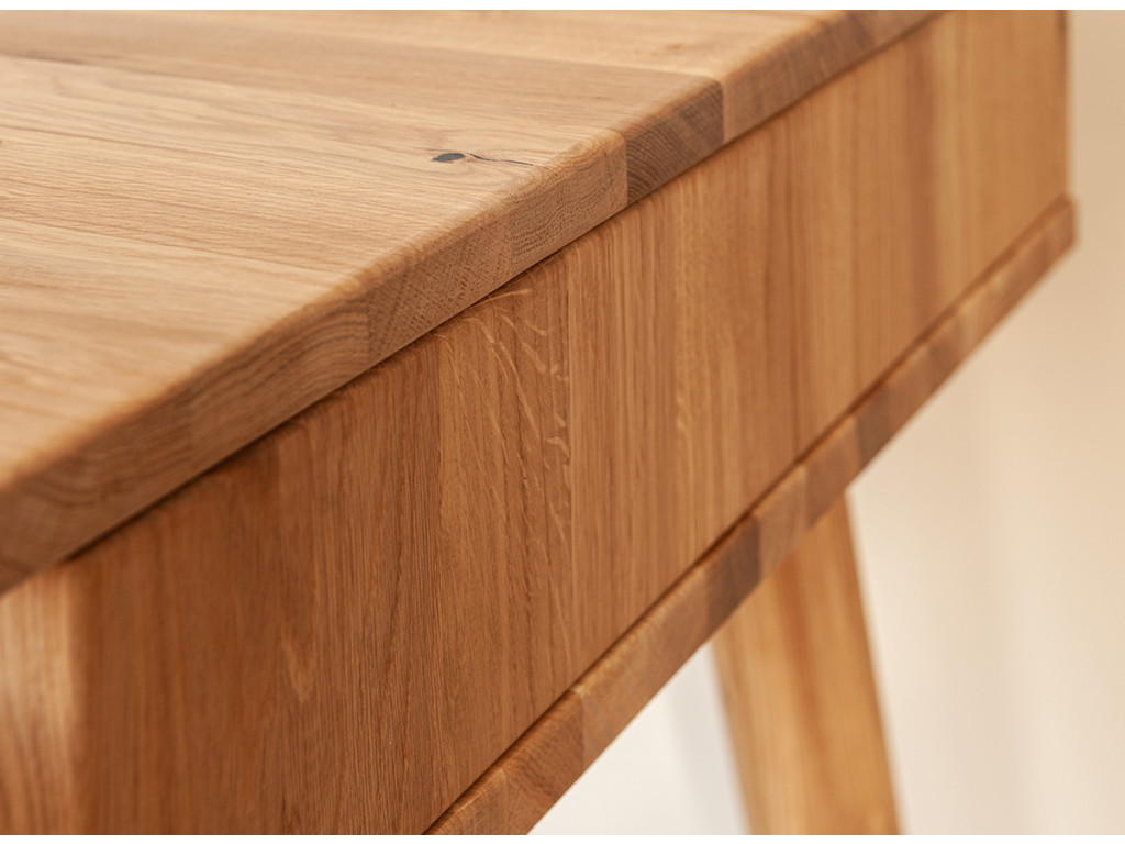 Moderný písací stôl Simon ohúri nadšencov minimalizmu. Je výrazný pre svoj atypický dizajn. Stolík na dlhých nohách dodá každému interiéru ten správny štýl. Je vyrobený z masívneho dubu, ktorý má antistatické vlastnosti. Stolík disponuje zásuvkou so zárezom, ktorý slúži ako úchytka. Má špecifický tvar vďaka nerovnomerným hranám na pracovnej doske. Stôl je natretý v odtieni dub, ktorá v miestnosti vytvorí pohodovú prírodnú atmosféru. Hodí sa do malého aj veľkého interiéru.