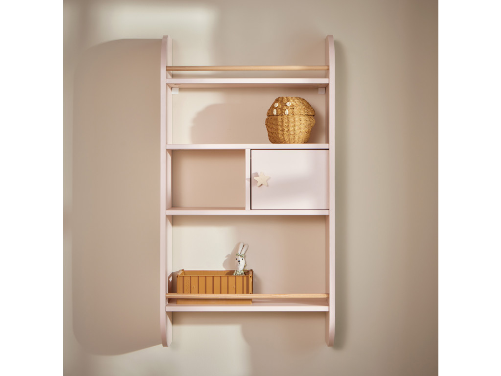 Dizajnová polica na stenu Rainbow vyniká nie len zaujímavým prevedením, ale aj dostatkom úložného priestoru. Disponuje malou zásuvkou a 2 policami so zarážkami, ktoré zabraňujú vypadnutiu predmetov. Dá sa namontovať nad stôl, posteľ a nízko na podlahu, čo umožňuje ľahký prístup ku knihám, hračkám a iným drobnostiam.
