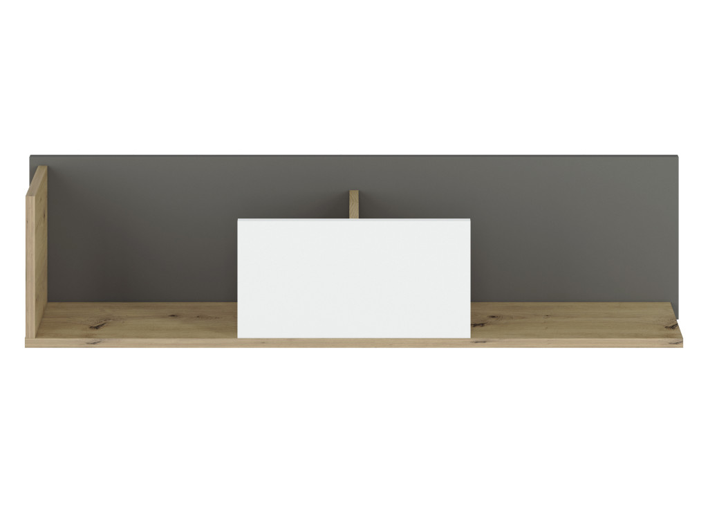 Kolekcia Fini prináša štýlový kontrast medzi prírodným korpusom v dekore dub artisan a modernými čelnými plochami v bielej a antracitovej farbe. Zadná stena v bielej farbe zabezpečuje ľahký a čistý vzhľad, ideálny pre každý moderný priestor.