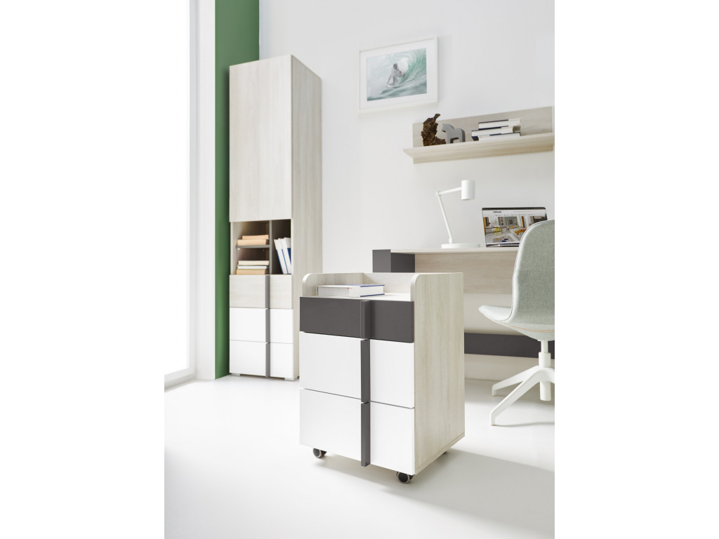 Model je vyrobený v kombinácií farieb biely dub witon a bielená. Policu môžete zavesiť nad posteľ, písací stôl či komodu. Je ľahko kombinovateľná s ďalším nábytkom z kolekcie Remo. Polica je vyrobená z laminovanej dosky zakončenej ABS hranami.