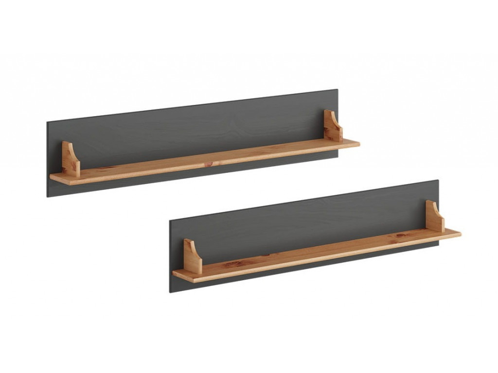 Polica na stenu z masívu Bellu (2 ks) - grafit/borovica