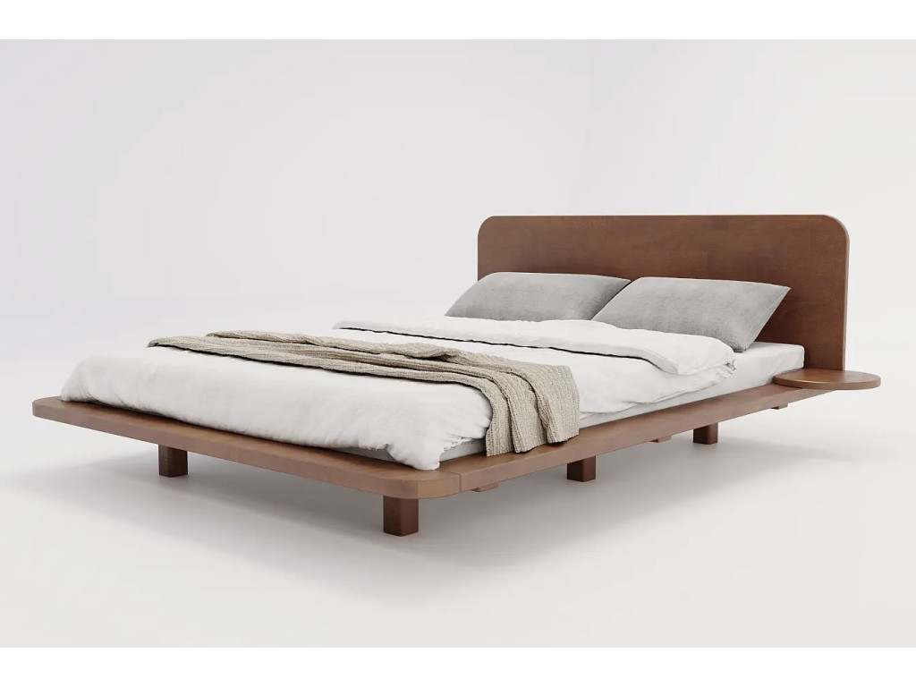 Moderná drevená posteľ v nápaditom štýle Japandic umne spája zdržanlivosť pri výbere doplnkov a vášeň pre prírodné farby a suroviny. Posteľ je celá vyrobená z krásneho a odolného bukového dreva v ekonomicky dostupnej a zároveň zaujímavej podobe. Originálna konštrukcia je položená na hrubom (4 cm) drevenom ráme, ktorý okolo matraca vytvára akúsi širokú policu. Zaoblené hrany čela aj rámu postele dodávajú nábytku vizuálnu ľahkosť a ovplyvňujú aj bezpečnosť používania.