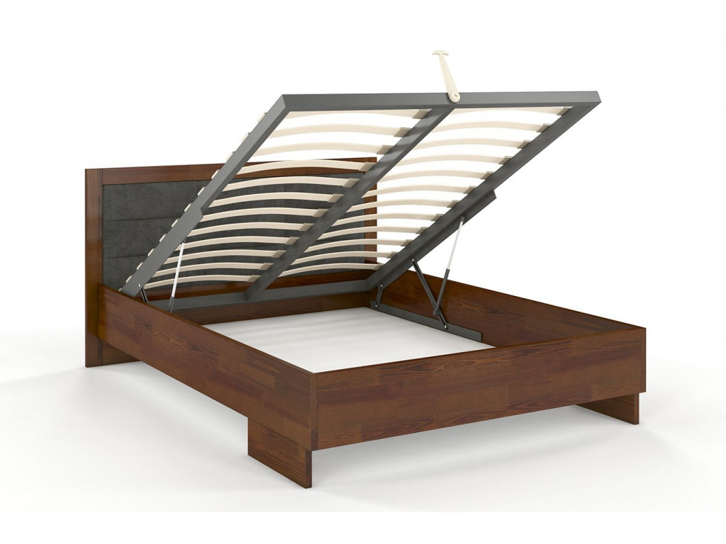 Borovicová posteľ Kalmar High čalúnenie a úložný priestor - orech