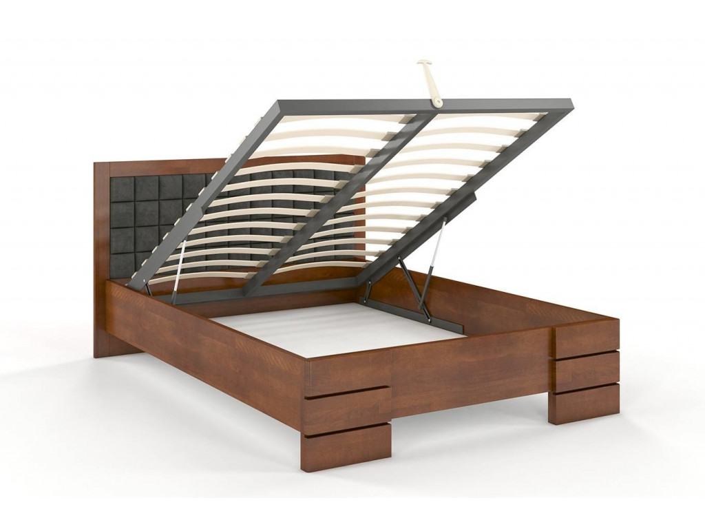 Buková posteľ Gotland High čalúnenie a úložný priestor - orech
