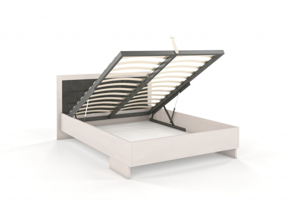 Buková posteľ Kalmar High čalúnenie a úložný priestor - biela