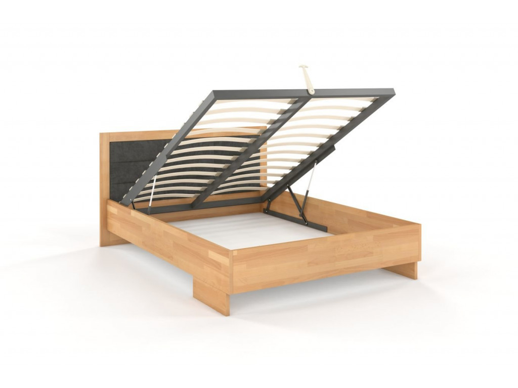 Buková posteľ Kalmar High čalúnenie a úložný priestor - prírodná