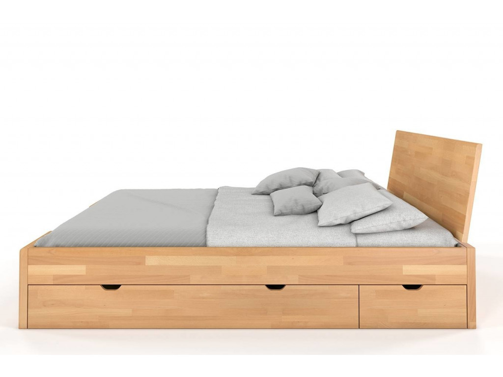 Jednoduchá, ale zato veľmi praktická dizajnová posteľ Hessler z bukového dreva s klasickým jednodielnym čelom a s úložným priestorom. 4 zásuvky, ktoré sa otvárajú z oboch strán, sú skvelým miestom na uloženie nielen posteľnej bielizne. Bonusom pre ešte väčšie pohodlie je i nadštandardná výška uloženia matraca.