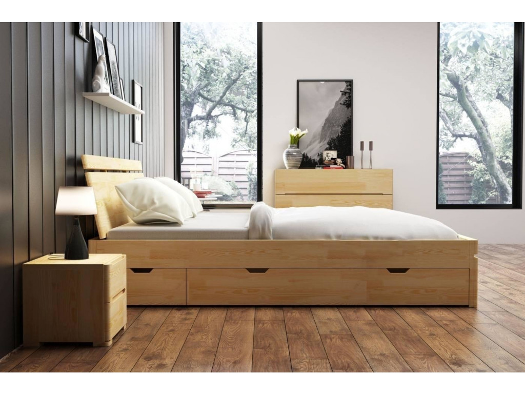 Borovicová posteľ Sparta z masívneho dreva so zásuvkami predstavuje pohodlný a funkčný nábytok do spálne. Prepracované prvky ako jemne zaoblené hrany či priestranné zásuvky z nej robia ideálneho kandidáta na výber vhodnej postele. Komfortná výška uľahčuje líhanie a vstávanie.