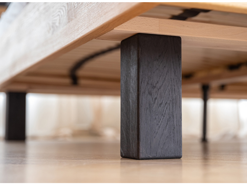 - 4 nohy postele sú vyrobené z dubového dreva, 2 doplnkové z PVC