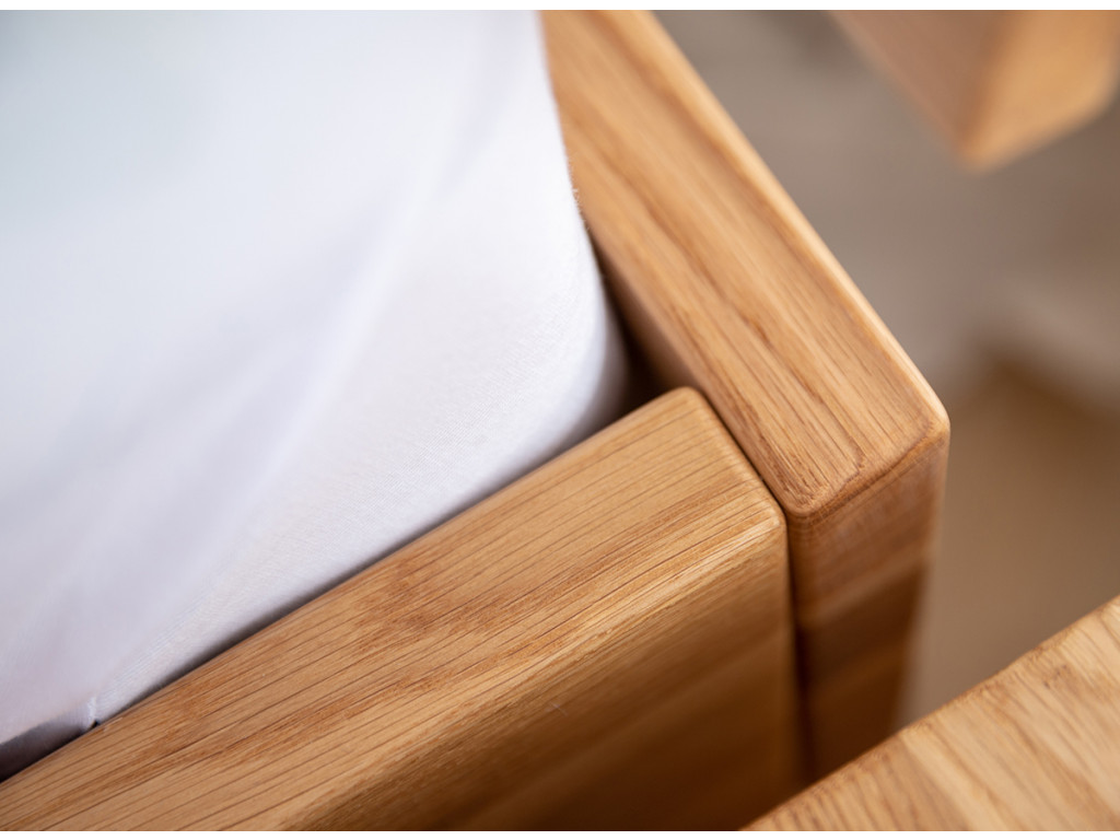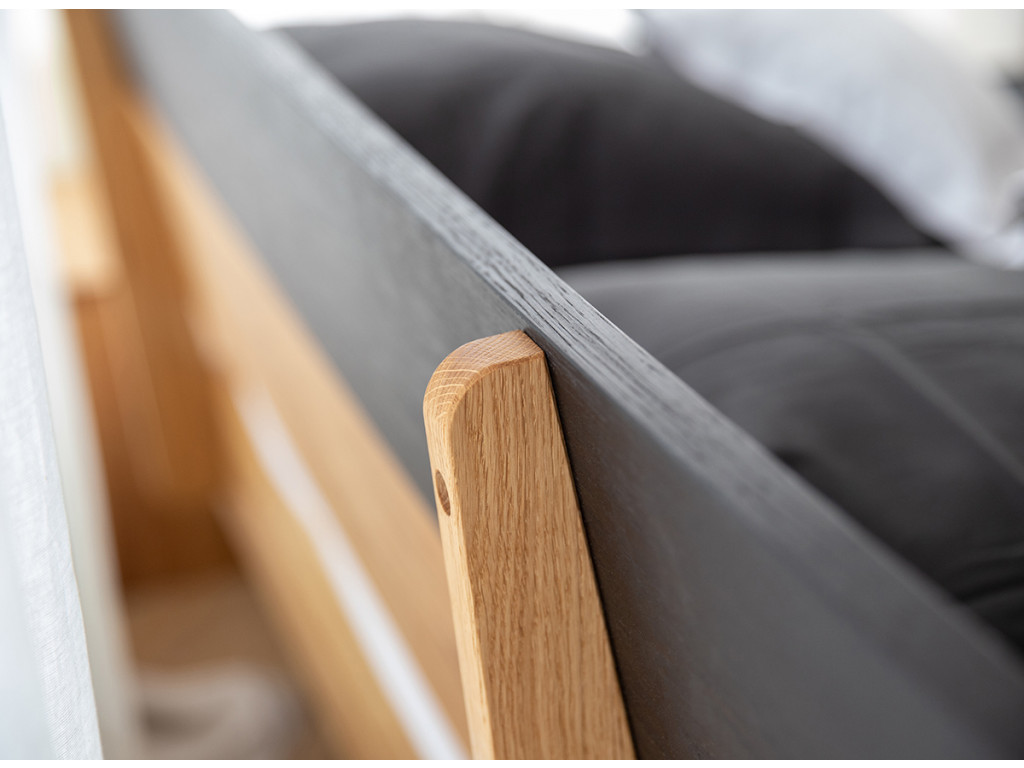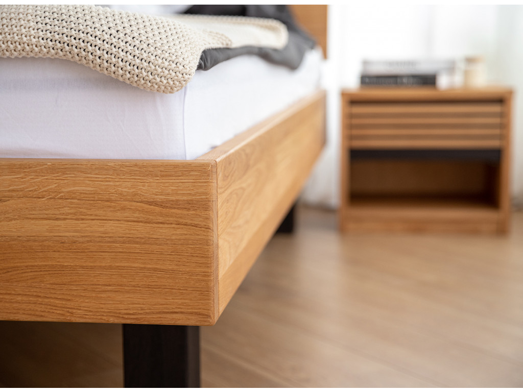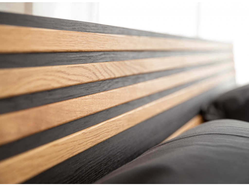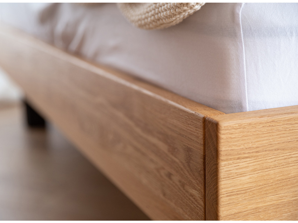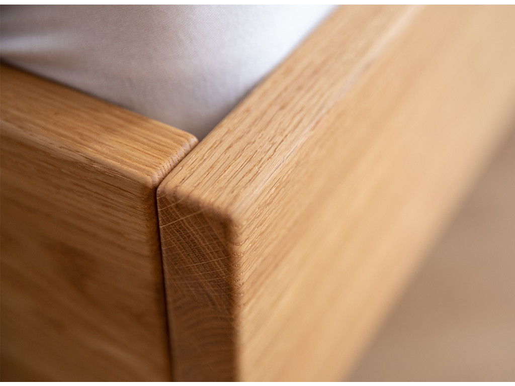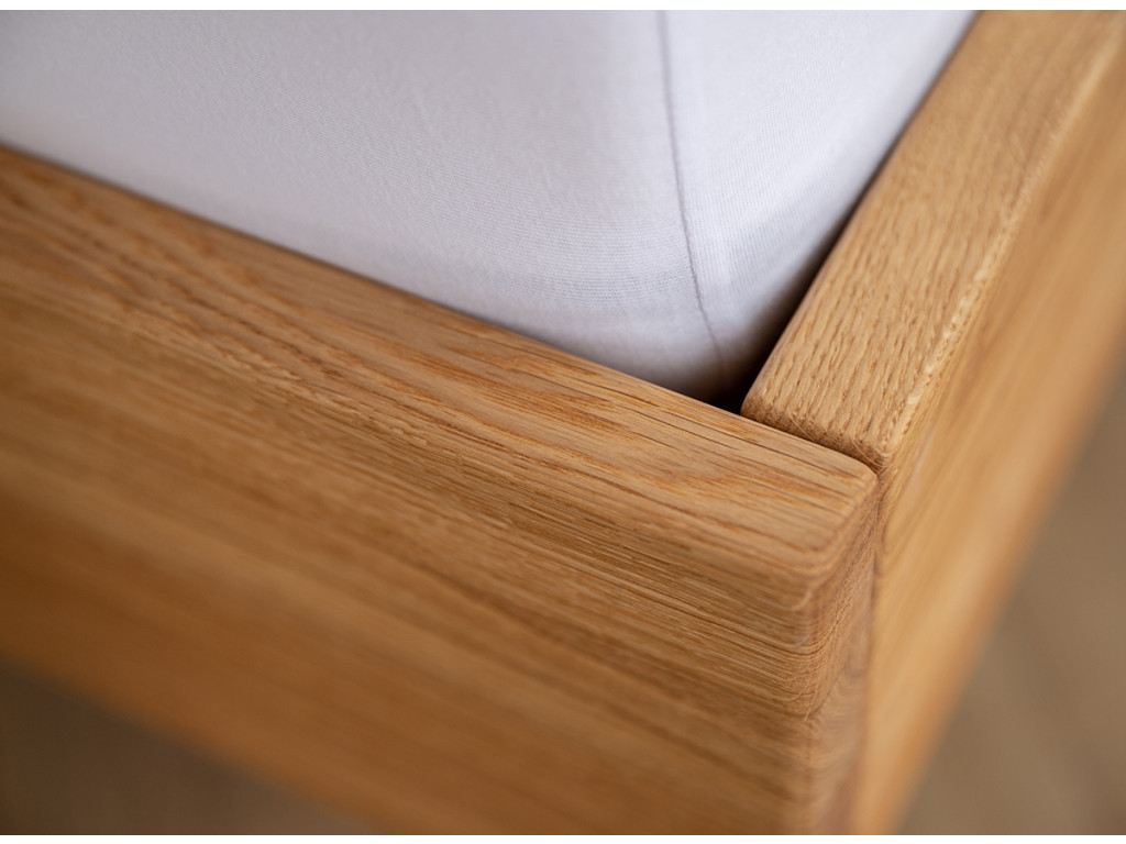Drevená posteľ s operadlom Ravello predstavuje dokonalú kombináciu estetiky a praktickosti. Celá konštrukcia pozostáva z dosiek, ktoré sú precízne opracované a povrchovo ošetrené prírodným olejom. Pod ňou sa nachádzajú štyri nohy, ktoré sú rovnako ako celá konštrukcia z dubového dreva, ale aj dve ďalšie nohy z PVC. Ich účelom je spevniť kus nábytku po rám, teda miesto, ktoré sa u mnohých výrobcov najrýchlejšie poškodí.