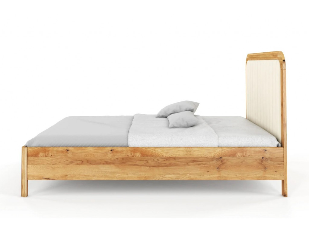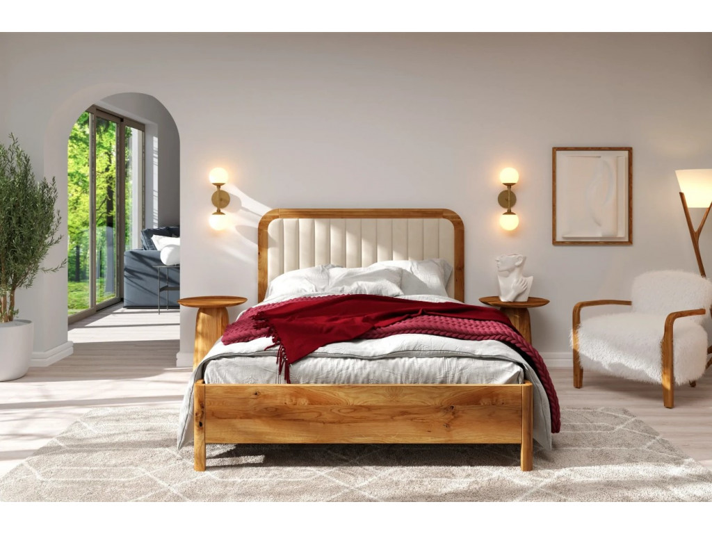 Masívna posteľ z dubu Modena očarí milovníkov precíznych spracovaní. Posteľ stojí na nožičkách, no čo priťahuje najväčšiu pozornosť je vysoké čalúnené čelo. Vertikálne prešívanie vytvára elegantný a originálny dizajn. Vybrať si môžete zo 7 odtieňov čalúnenia. Posteľ je vyrobená z dubového dreva, ktoré vyniká pevnosťou a odolnosťou voči poškodeniu.