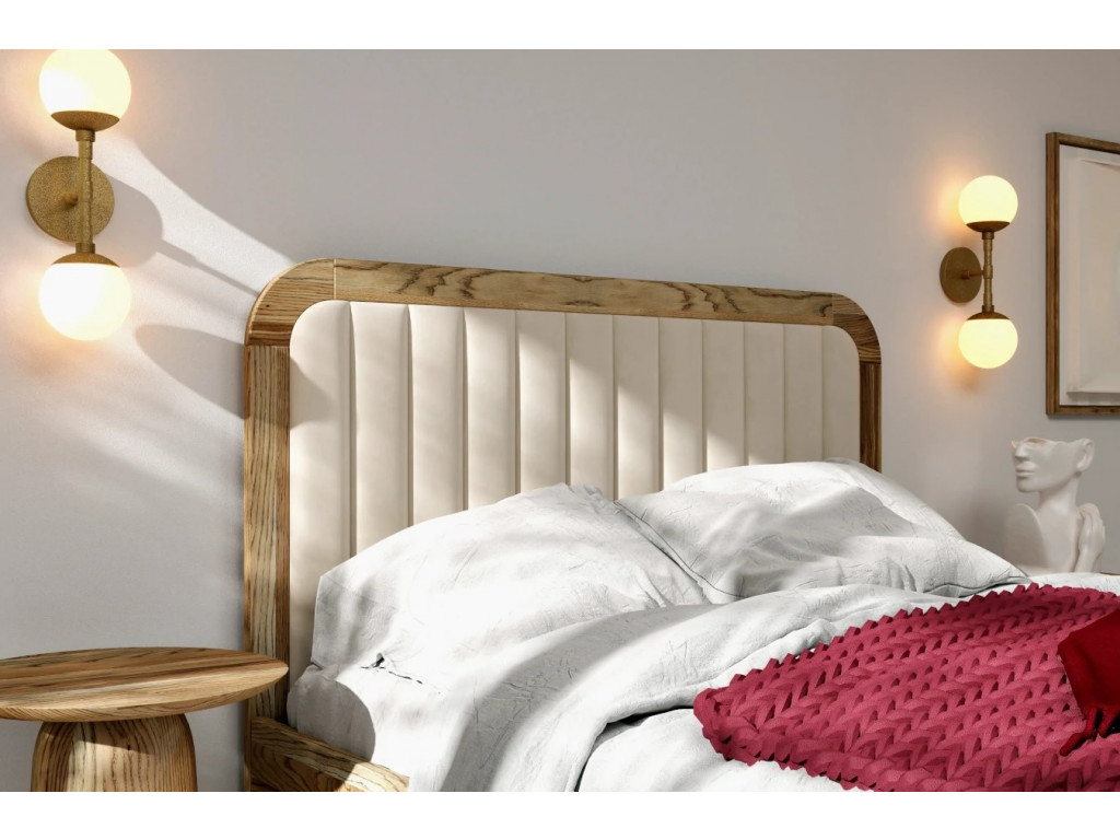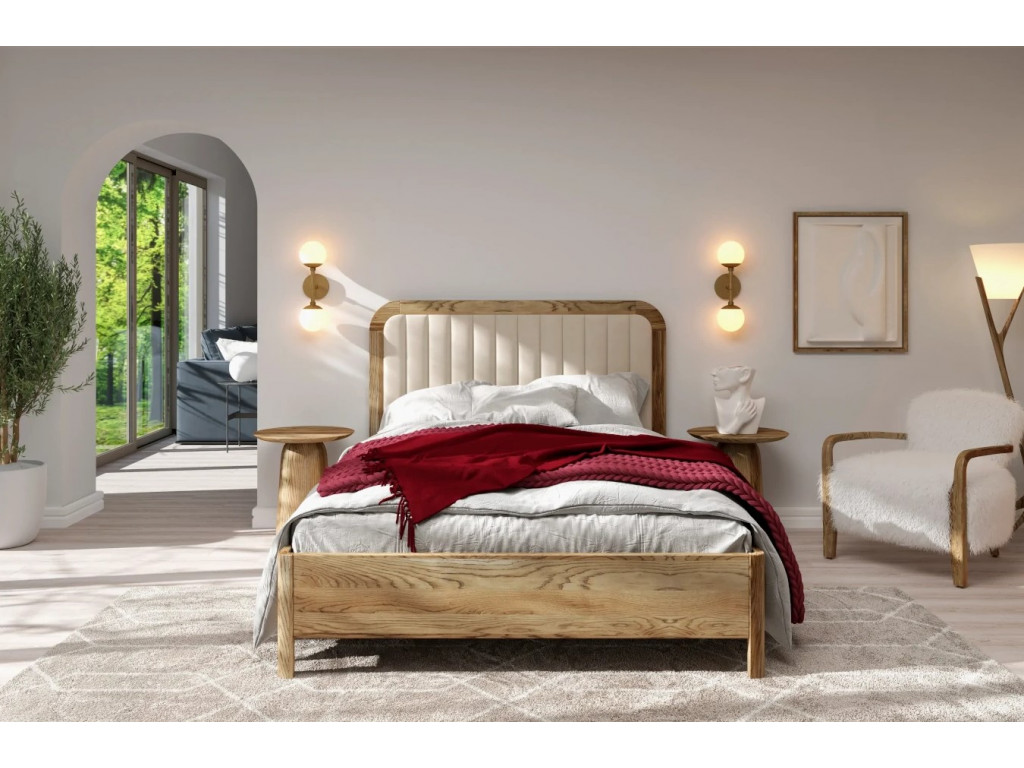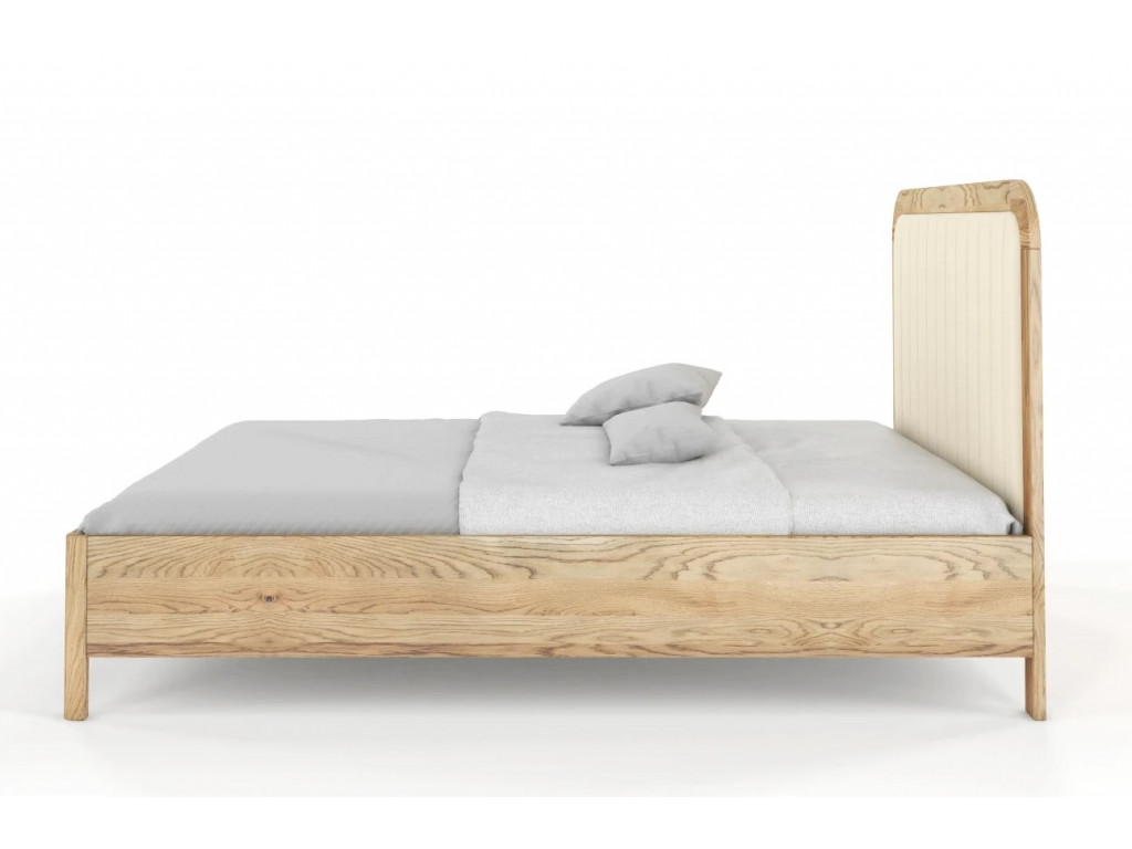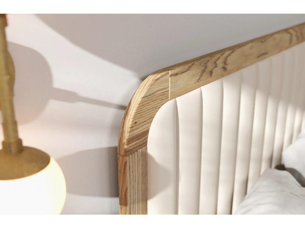 Masívna posteľ z dubu Modena je navrhnutá tak, aby očarila ja náročných užívateľov. Posteľ stojí na nožičkách, no čo priťahuje najväčšiu pozornosť je vysoké čalúnené čelo. Vertikálne prešívanie vytvára elegantný a originálny dizajn. Vybrať si môžete zo 7 odtieňov čalúnenia. Posteľ je vyrobená z dubového dreva, ktoré vyniká pevnosťou a odolnosťou voči poškodeniu.