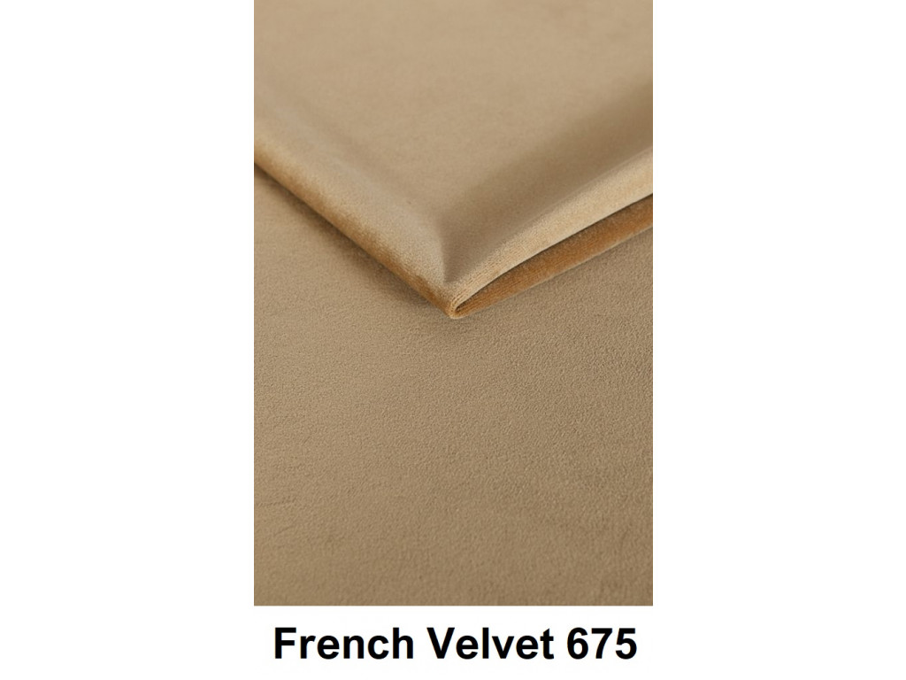 Prvkom, ktorý odlišuje túto posteľ od ostatných, je vysoké obdĺžnikové čalúnené čelo uzavreté v drevenom ráme, o ktoré stačí oprieť vankúš a užívať si komfort pri čítaní knihy alebo pozeraní televízie.