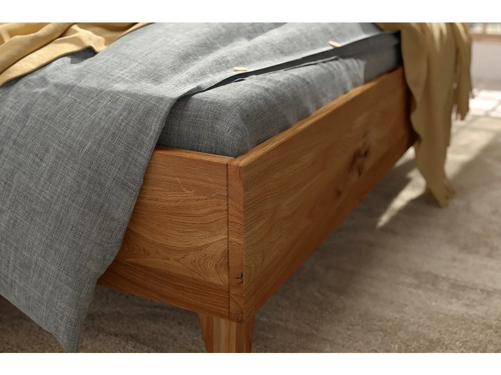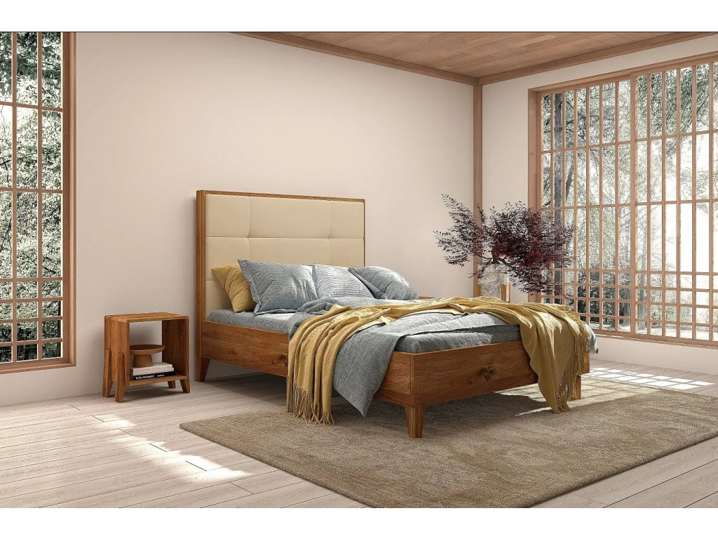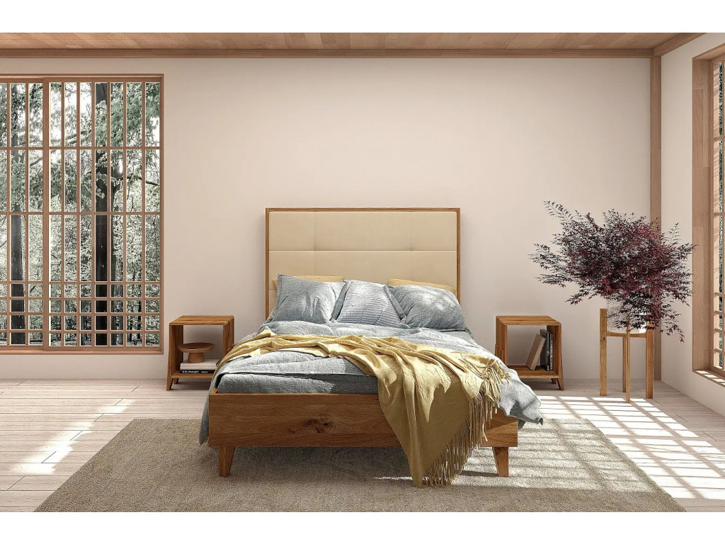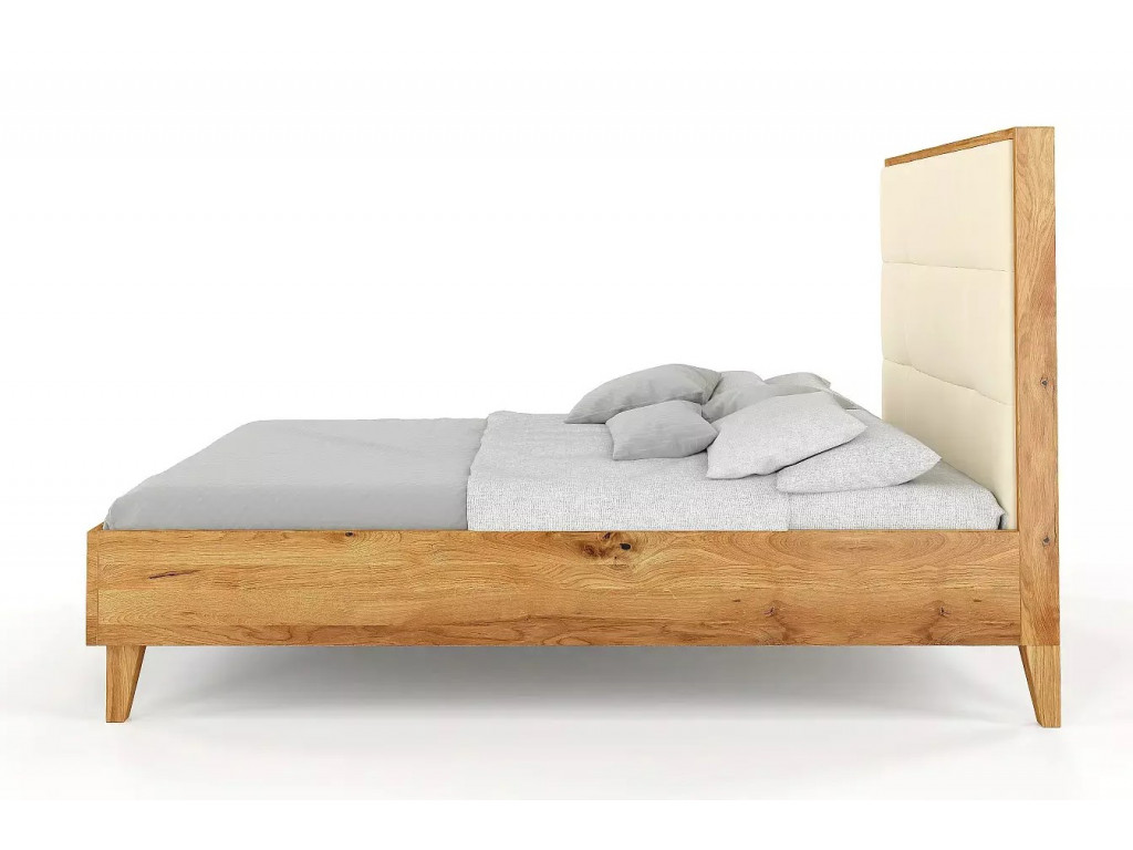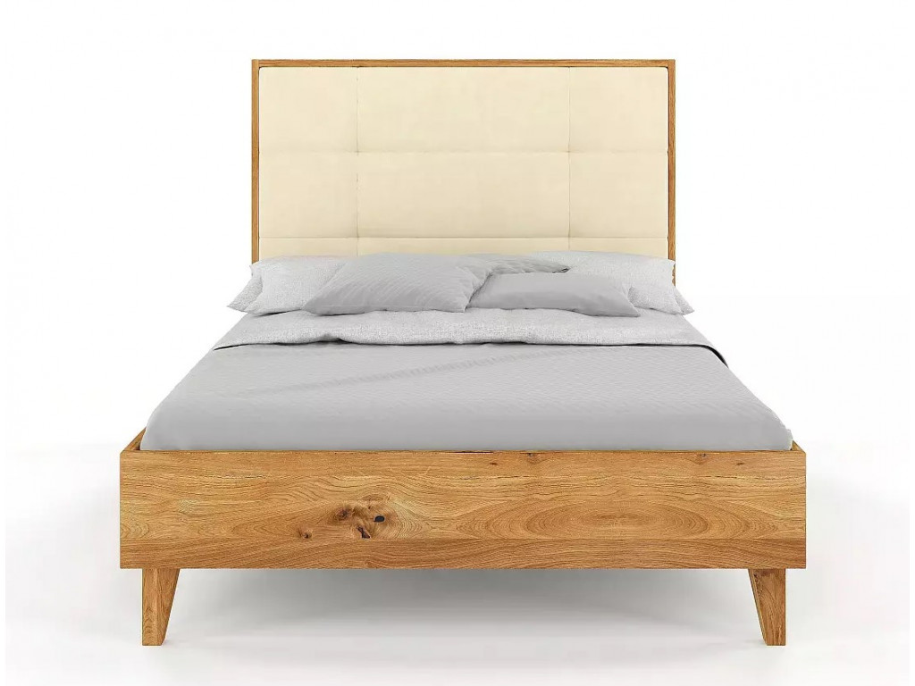Dubová posteľ s čalúneným čelom Frida - prírodný lak
