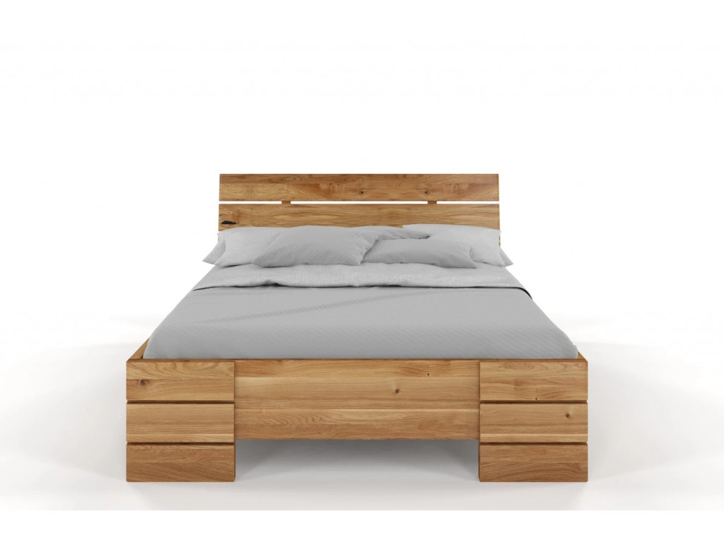 Vysoká verzia postele Sandemo s trojdielnym čelom sa zaručene postará o komfort pri každodennom spánku. Manželská posteľ je vyrobená z dubového dreva odolného voči poškodeniu. Dokonalý dizajn a dokonalosť spracovania tu idú ruka v ruke s praktickosťou. Vybrať si môžete zo 4 farieb dreva a 6 rozmerov postele.
