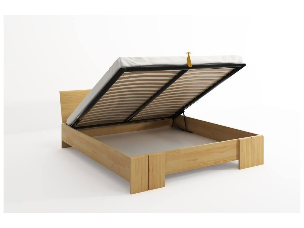 Posteľ z masívu Vestre Maxi má výhodnú výšku, ktorá umožňuje pohodlné a bezproblémové vstávanie bez najmenšej námahy. Preto je vynikajúcou voľbou pre starších ľudí a zároveň komfortným riešením na uskladnenie posteľnej bielizne vo vnútri. Dno úložného priestoru je vyrobené zo silnej HDF dosky a otvárací systém je založený na plynových piestoch, ktoré zaručujú tiché, ľahké a hladké zdvíhanie roštu.