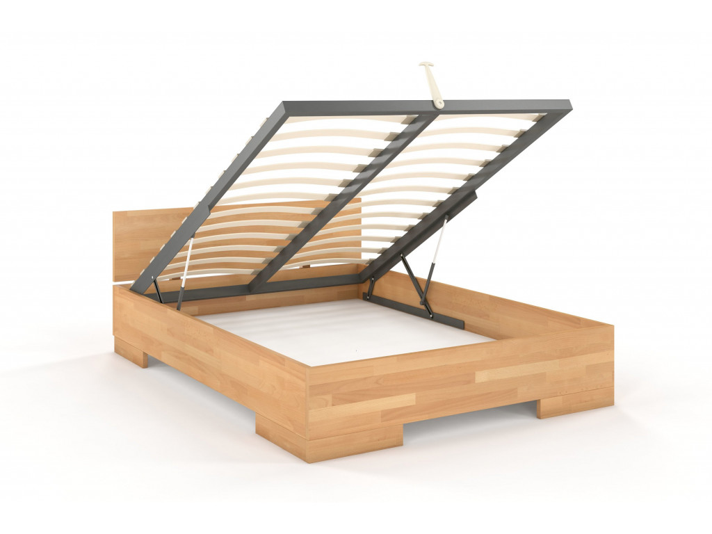 Masívna posteľ z bukového dreva Spectrum Maxi s úložným priestorom predstavuje pohodlný a funkčný kus nábytku. Priestor na odkladanie posteľnej bielizne, ktorý sa nachádza pod matracom, sa ľahko otvára a zvýšená výška postele uľahčuje líhanie i vstávanie.