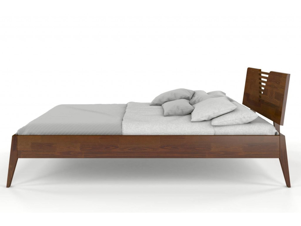 Drevená posteľ s nadčasovým dizajnom. Šikmé šíthle nohy a šikmé výrezy v čele dodávajú posteli unikátny vzhľad a ľahkosť. Dostatočná výška uľahčuje vstávanie, líhanie a tiež starostlivosť o povrch pod posteľou. Na výber v 4 šírkach a 6 odtieňoch borovicového dreva.