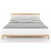 Drevená posteľ Livia zaujme minimalistickou formou a nadčasovou kombináciou bielej s prírodnou farbou bukového dreva. Posteľ má jednoduché vysoké čelo postele ukončené bukovou lištou.