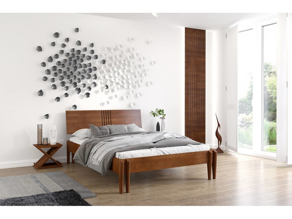Nadčasová drevená posteľ vyrobená s dôrazom na stabilitu. Tej dopomáhajú vysoké dvojité nohy, ktoré zároveň zaisťujú odpočinok v správnej polohe a uľahčujú čistenie priestoru pod posteľou. Minimalistické čelo je zdobené zvislým ryhovaním. Na výber v 4 šírkach a 6 farbách dreva.
