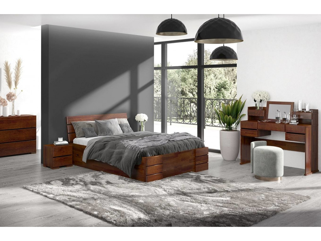 Drevená posteľ z borovice do spálne Sandemo je ceneným a štýlovým nábytkom, ktorý zmení každú spálňu a navyše poskytne pohodlný a dokonalý odpočinok. Stabilita a solídne spracovanie dodatočne zdôrazňujú jeho výhody. Poznávacím prvkom tejto postele sú priestranné zásuvky na oboch stranách. Sú navrhnuté tak, aby ich čelné strany boli v jednej rovine s bočnicami postele.