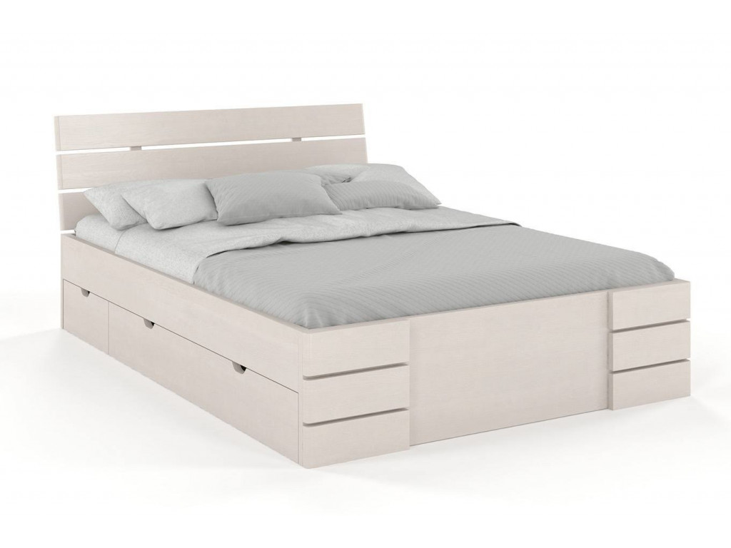 Posteľ so zásuvkami z borovice Sandemo - biela