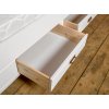 Borovicová posteľ okrem kvalitného spracovania a záruky pohodlného spánku ponúka aj 4 priestranné zásuvky s kovovými úchytkami v zlatej farbe. Môžete ich použiť na posteľnú bielizeň či vankúše. Posteľ disponuje vysokým čelom, vďaka ktorému si môžete pohodlne prečítať večernú knihu. Stojí na masívnych nožičkách, ktoré jej dodávajú pevnosť a stabilitu.