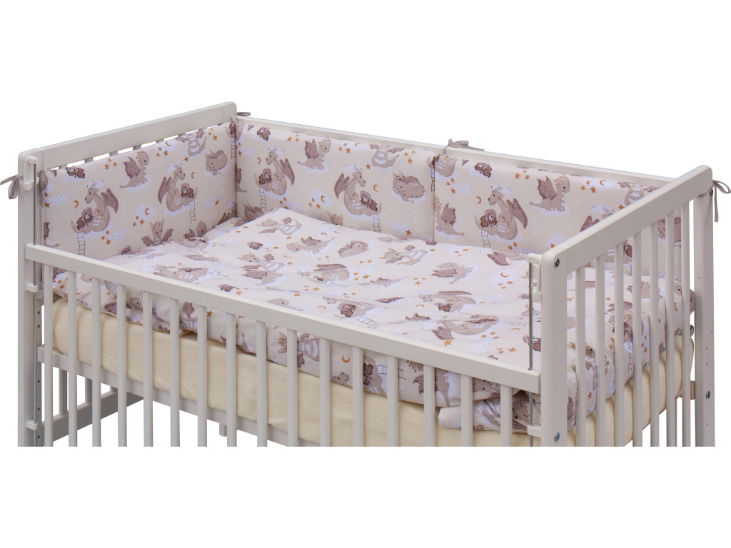 Biela postieľka s kompletnou výbavou Dino - béžová, 120 x 60 cm