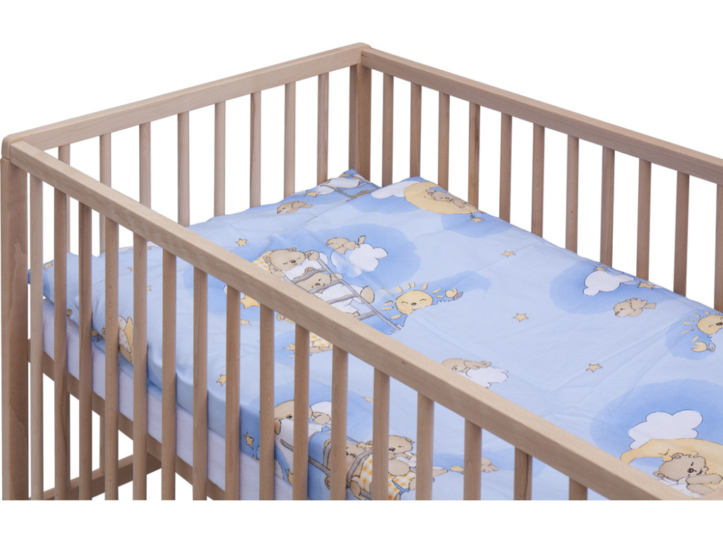 Buková detská postieľka s výbavou Mráčik - modrá, 120 x 60 cm