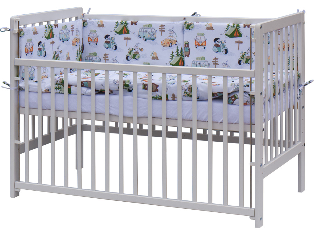 Detská postieľka z masívu (borovica) je klasického dizajnu a poslúži rodičom na dlhšie obdobie, pretože sa dá prispôsobiť rastu dieťaťa. Rošt postieľky sa dá nastaviť do šiestich polôh. Postupne ako dieťa rastie, rošt sa posúva smerom nadol. Postieľka má aj sťahovací bok . Zakúpením tejto postieľky je v cene aj kompletná súprava pre bábätko, ktorá obsahuje matrac, vankúš, perinku, plachtu a ochranný mantinel i obliečky tyrkysovej farby s detským veselým motívom Fany.