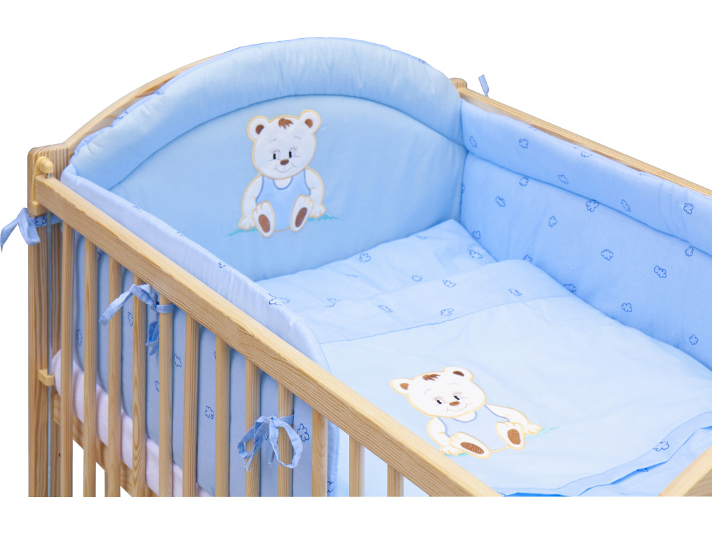Detská postieľka s kompletnou výbavou Medvedík - modrá, 120 x 60 cm
