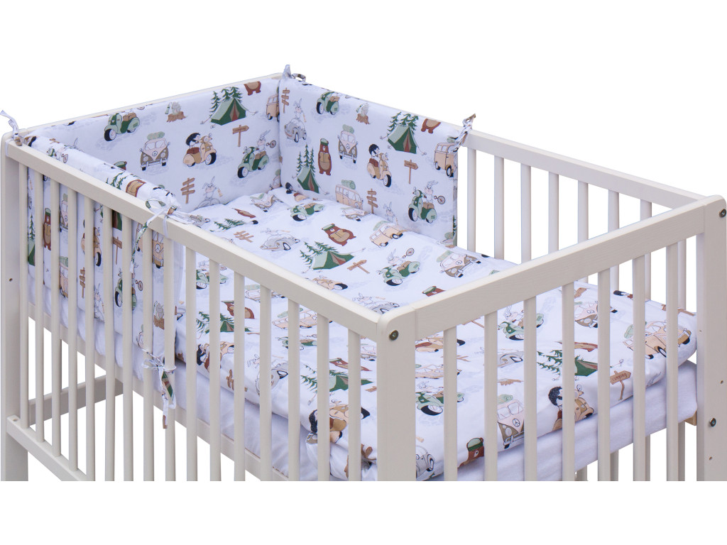 Detská postieľka z masívu (borovica) je klasického dizajnu a poslúži rodičom na dlhšie obdobie, pretože sa dá prispôsobiť rastu dieťaťa. Rošt postieľky sa dá nastaviť do piatich polôh. Postupne ako dieťa rastie, rošt sa posúva smerom nadol. Postieľka má aj vyberateľné priečky a tak staršie dieťa môže po zobudení kedykoľvek vyjsť z postieľky samé. Zakúpením tejto postieľky je v cene aj kompletná súprava pre bábätko, ktorá obsahuje matrac, vankúš, perinku, plachtu a ochranný mantinel i obliečky béžovej farby s detským veselým motívom Fany.