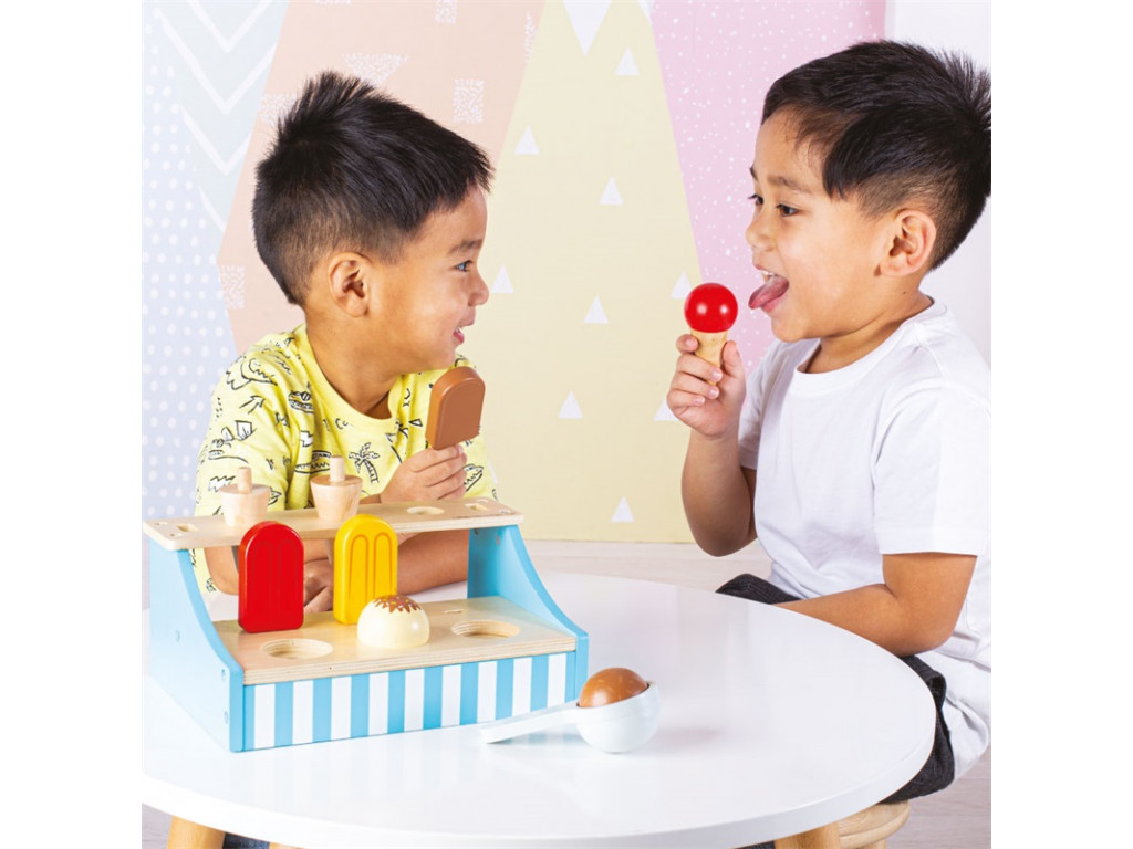 Užite si hodiny zábavného hrania s týmito lahodnými zmrzlinami a stojanom na ne. Stačí si len vybrať svoj obľúbený nanuk... S drevenými sladkými dobrotami od Bigjigs Toys prežijete hodiny nápaditej a vzdelávacej hry na rôzne roly. Obsahuje 6 rôznych druhov zmrzlín a nanukov. Dodávané v drevenom stojane, ideálne na vystavenie v detskom obchodíku Village. Skvelý spôsob, ako podporiť kreatívne a nápadité hranie. Vyrobené z vysoko kvalitných, zodpovedne získaných materiálov. Spĺňa aktuálne európske bezpečnostné normy.