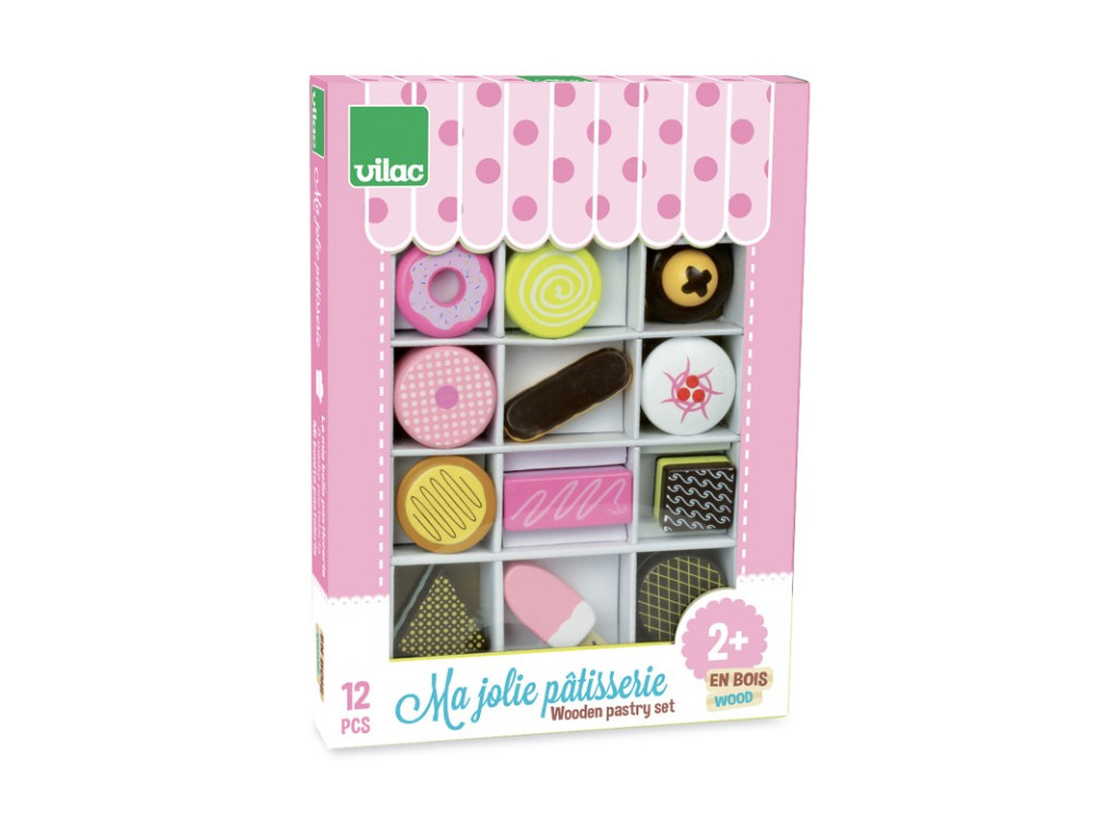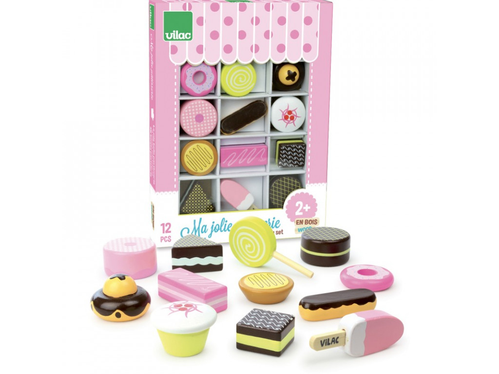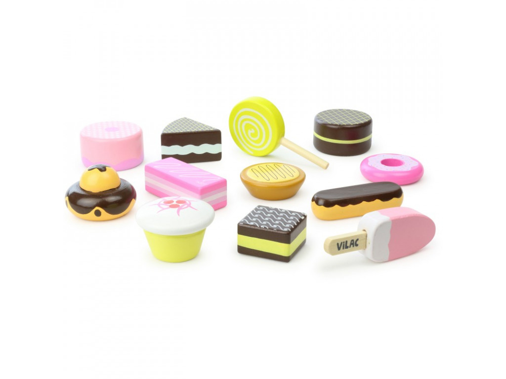 Rovnako ako skutočné sladkosti, aj tieto drevené vyzerajú veľmi chutne. Balenie obsahuje 12 kusov koláčov a sladkostí. Skvelá sada do detských kuchyniek.