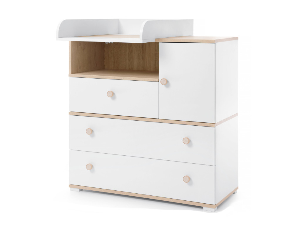 Prebaľovací pult je praktickým doplnkom, bez ktorého si mnohé mamičky už ani nevedia predstaviť detskú izbu. V prvých mesiacoch u bábätiek sa stáva neoceniteľnou súčasťou každodennej starostlivosti. Tento nadstavec je navyše špeciálne navrhnutý pre komodu Zoya, takže perfektne sadne a pritom poskytne bezpečný priestor na prebaľovanie a chráni dieťa pred vypadnutím.