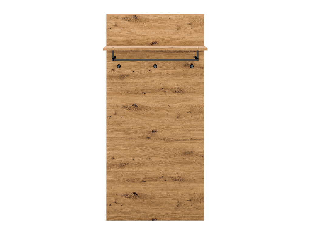 Vešiakový panel Nelin 15 je praktickým a štýlovým doplnkom pre každú predsieň. Ponúka hornú poličku, ideálnu na uloženie klobúkov, šálov alebo dekorácií, a vešiakovú tyč na zavesenie kabátov či búnd. Tri praktické vešiaky dopĺňajú závesný priestor a sú ideálne na zavesenie tašiek, dáždnikov alebo doplnkov. Tento panel kombinuje funkčnosť s elegantným dizajnom, čím prispieva k usporiadanej a moderne zariadenej predsieni.